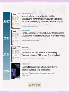▲ 研究成果 Department of Medical Research & Development, Linkou Newsletter 119