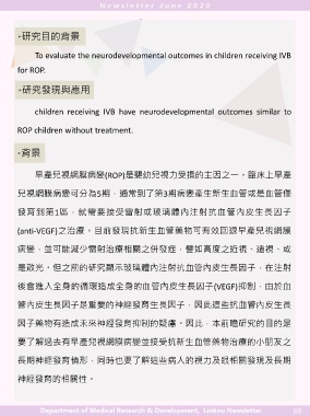 長期神經發育情形,同時也要了解這些病人的視力及眼相關發現及長期