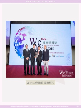 ▲ (左二)裴醫師 獲獎照片 Department of Medical Research & Development, Linkou Newsletter 97