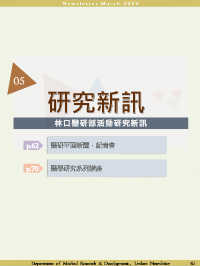 05 林 口 醫 研 部 活 動 研 究 新 訊 p.62 醫 研 平 面 新 聞 、 記 者 會 p.70 醫 學 研 究 系 列 講 座 Department of Medical Research & Development , Linkou Newsletter 61
