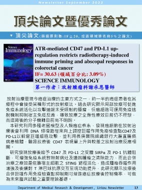 研究發現放療後給予 CD47 及 PD-L1 之受體 SIRPα 及 PD-1 抗體阻
