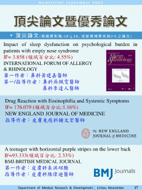 ▾ 頂 尖 論 文 ( 篩 選 原 則 為 : I F ≧ 2 0 , 或 該 領 域 排 名 前 5 % 之 論 文 )