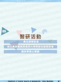 03 醫 研 活 動 長 北 清 研 討 會 林 口 長 庚 醫 院 與 長 庚 大 學 學 術 交 流 研 討 會 劉 扶 東 院 士 演 講 Department of Medical Research & Development , Linkou Newsletter 19