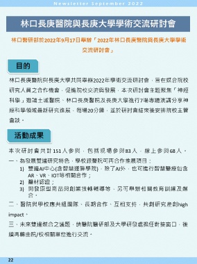 林口醫研部於2022年9月17日舉辦「2022年林口長庚醫院與長庚大學學術