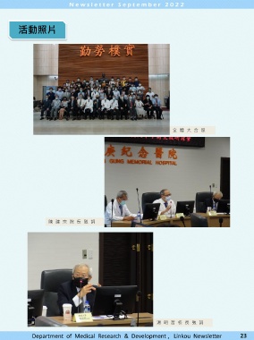 活動照片 全 體 大 合 照 陳 建 宗 院 長 致 詞 湯 明 哲 校 長 致 詞 Department of Medical Research & Development , Linkou Newsletter 23