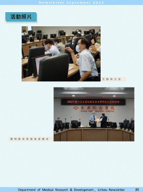 活動照片 互 動 與 交 流 湯 明 哲 校 長 頒 發 感 謝 狀 Department of Medical Research & Development , Linkou Newsletter 25