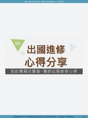 04 03 我 的 異 國 交 響 曲 -醫師出國進修心得 Department of Medical Research & Development , Linkou Newsletter 23