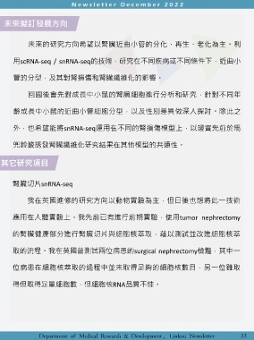 未來的研究方向希望以腎臟近曲小管的分化、再生、老化為主。利