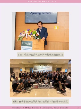▲圖:邱泰源立委代表賴清德副總統蒞臨致詞 ▲圖:春季學校30位學員與21位國內外免疫學專家合照 Department of Medical Research & Development , Linkou Newsletter 11