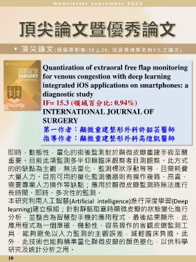 learning)建立模組;針對靜脈阻塞時顯微皮瓣的狀態變化進行