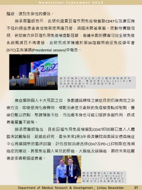 系統殲滅且不再復發,此研究成果獲選於第36屆國際癌症免疫學年會