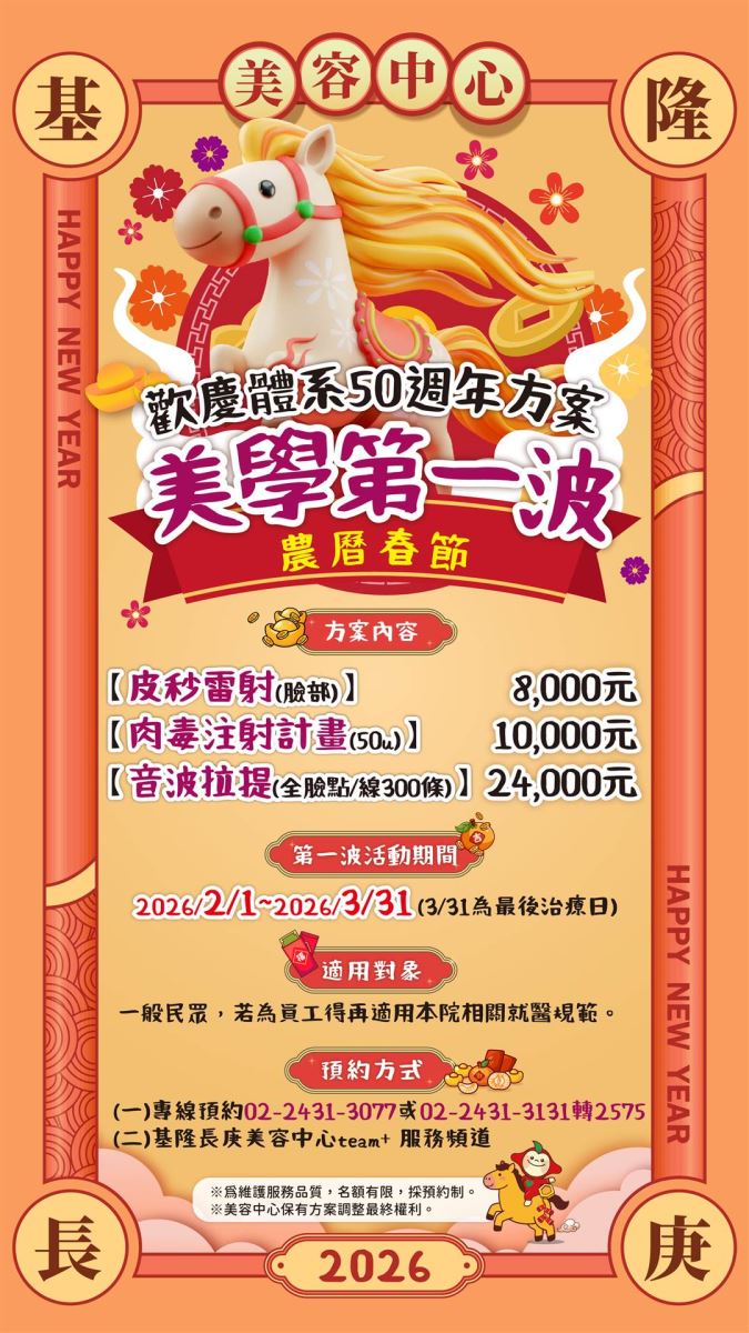 基隆美容中心2026年「歡慶體系50 週年方案~美學第一波農曆春節」來囉
