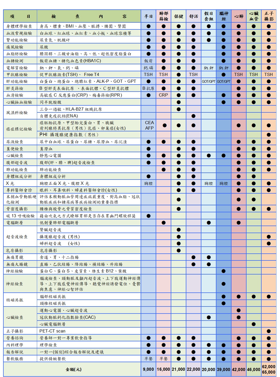 > 健康檢查 >服務項目