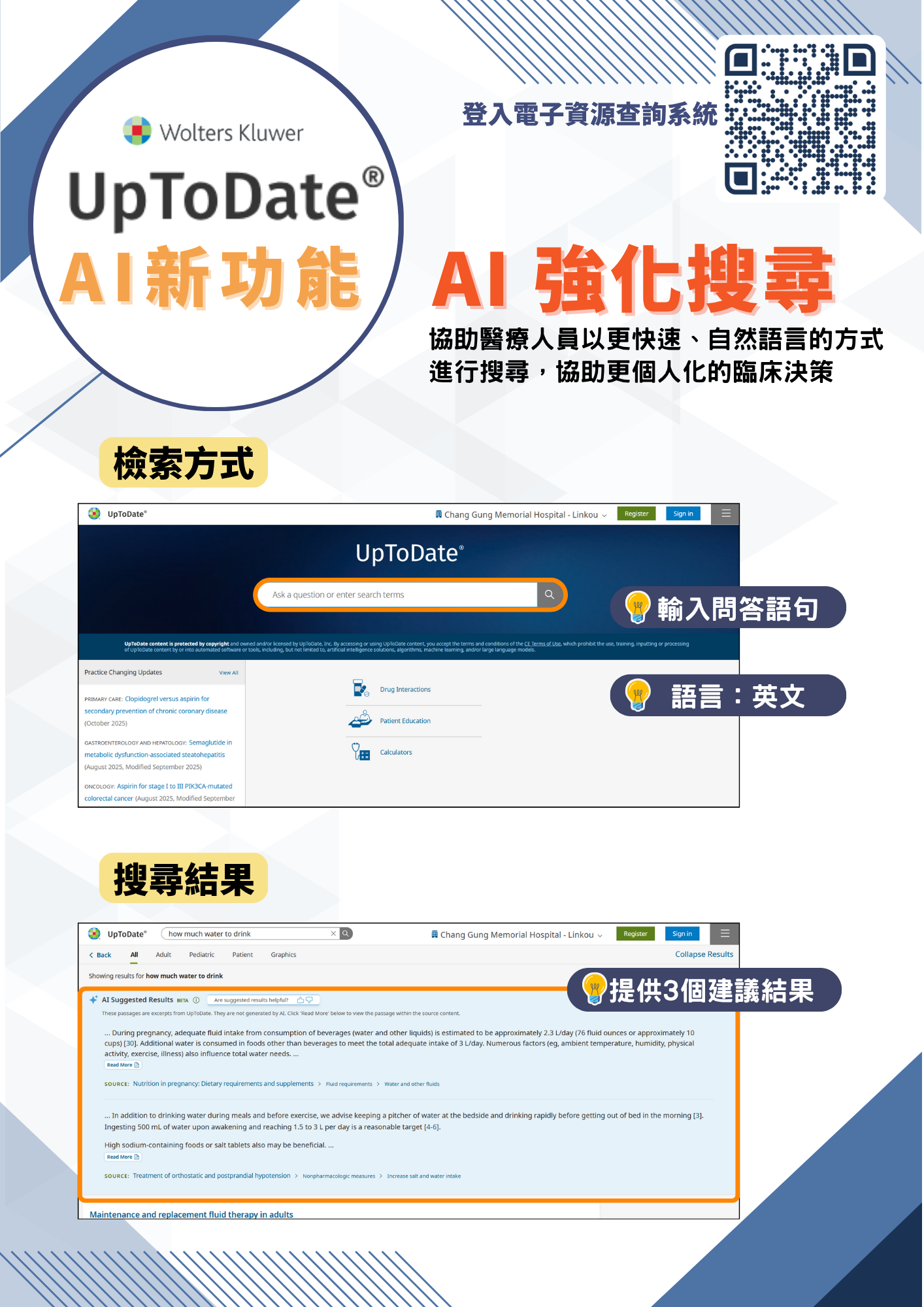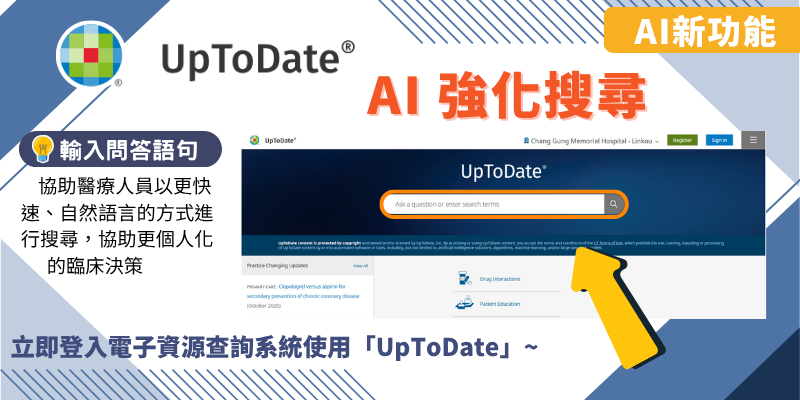 UpToDate資料庫提供AI強化搜尋新功能,歡迎同仁多加利用~~