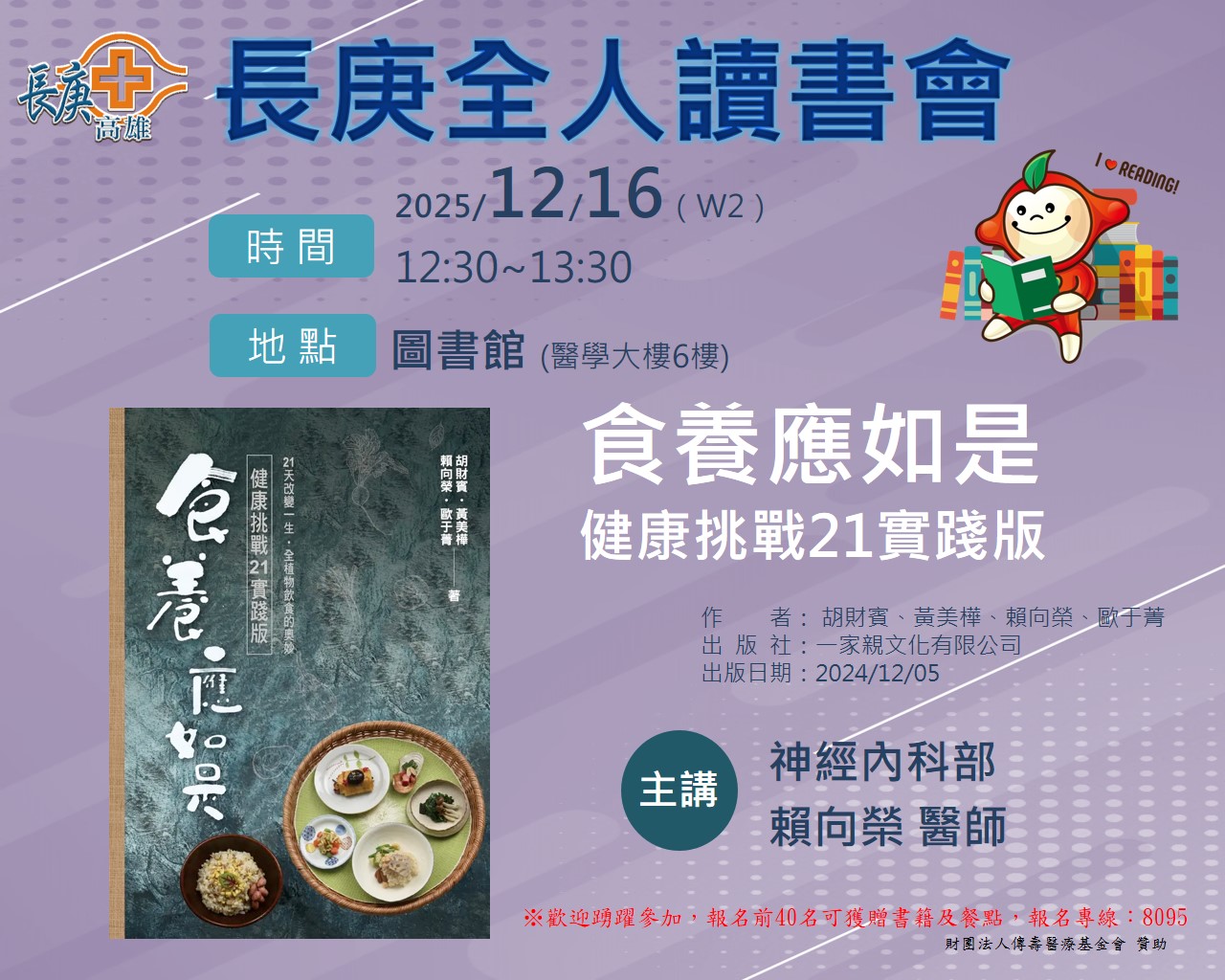 2025 年12月16日(二) 12:30-13:30 地點:圖書館 主題:食養應如是 |